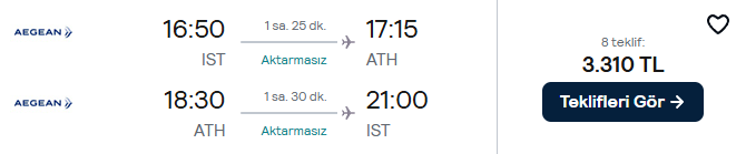 20 – 26 Kasım | İstanbul – Atina Uçak Bileti