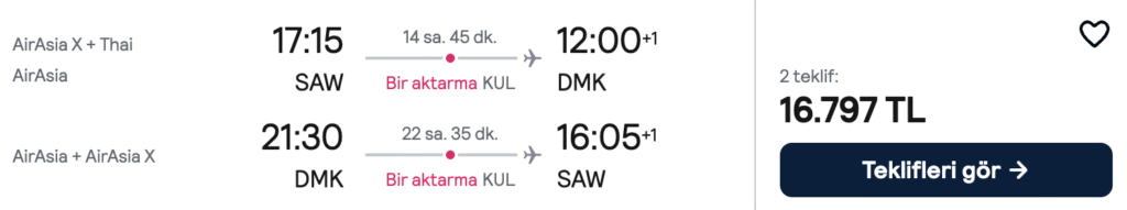 Uzak Doğu’yu keşfetmek isteyenler için harika bir fırsat! İstanbul – Tayland arası uçak biletleri Nisan ayında sadece 16.800 TL’den başlıyor. Konforlu ve hızlı bir seyahat için aşağıdaki tarihleri değerlendirebilirsin.