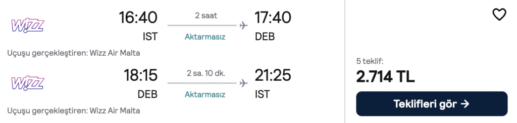 İstanbul’dan Debrecen’e Temmuz ve Ağustos ayları için uygun fiyatlı uçak biletleri sadece 2.700 TL’den başlayan fiyatlarla.