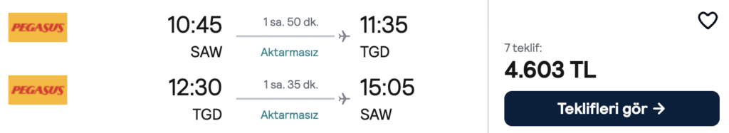Karadağ’a uygun fiyatlı bir yolculuk planlayanlar için kaçırılmayacak bir fırsat! İstanbul – Karadağ uçuşları, Nisan ayında 4.600 TL‘den başlayan fiyatlarla. En uygun tarihler aşağıda 👇