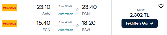 2 – 8 Kasım | İstanbul – Kıbrıs Uçak Bileti
