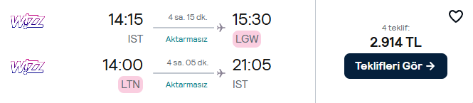 27 Kasım – 3 Aralık | İstanbul – Londra Uçak Bileti