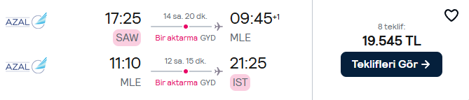 30 Kasım – 8 Aralık | İstanbul – Maldivler Uçak Bileti
