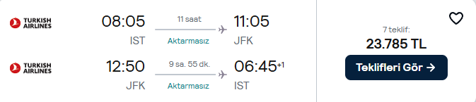 24 Kasım – 4 Aralık | İstanbul – New York Uçak Bileti