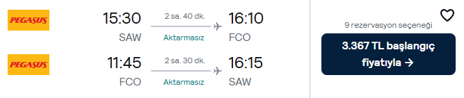 İstanbul – Roma Uçak Bileti 3.400 TL | Şubat 2026