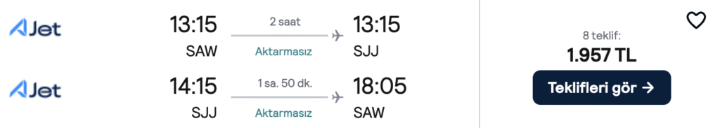 İstanbul’dan Saraybosna’ya uygun fiyatlı uçak bileti fırsatlarını mı arıyorsun? Şubat ve Mart 2026 döneminde sadece 2.000 TL’den başlayan fiyatlarla uçabilirsin!