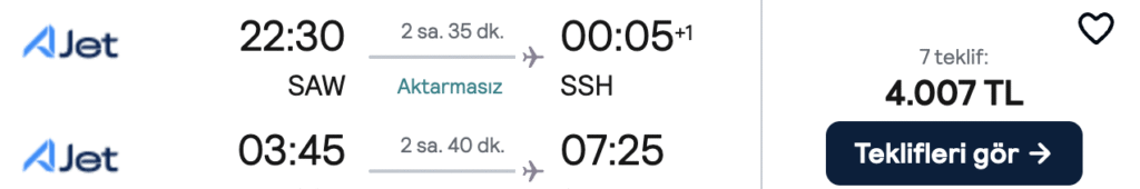İstanbul – Şarm El Şeyh Uçak Bileti 4.000 TL | Mart 2026