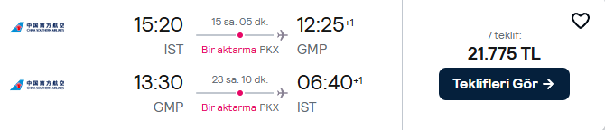 Güney Kore’ye uygun fiyatlı bir yolculuk planlayanlar için kaçırılmayacak bir fırsat! İstanbul – Seul uçuşları, Kasım ayında 21.800 TL’den başlayan fiyatlarla. En uygun tarihler aşağıda 👇
