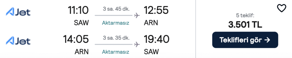 İstanbul’dan Stockholm’e uygun fiyatlı uçak bileti mi arıyorsun? Mart ayı için sadece 3.500 TL’den başlayan fiyatlarla uçuş fırsatlarını kaçırma!